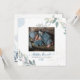 PixDezines thank you and Birth Announcement for a baby boy with watercolor foliage in dusty blue Eucalyptus, and champagne bubbles.