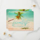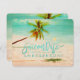 PixDezines tropical beach and a palm tree with turquoise blue ocean backdrop as save our date. Add your engagement photo on reversed. PixDezines dynamic designs allow you to edit any element on this invitation template.