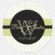 PixDezines DIY colours... Take a pick... we picked chartreuse green polkadots for your monogram wedding stickers (envelope sealers), black accent. Great for everyday use. Fully customisable. Fonts and back ground colours can be easily changed.