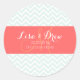PixDezines adjustable white chevron pattern in seafoam / mint green accented with coral orange banner.. these colours are customisable, as well as fonts. Add your monogram on this wedding stickers (envelope sealers). Simply click customise it button to edit.