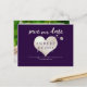 Trendy and stylish PixDezines' faux silver heart with stylish new brush font in faux silver with DIY colour, dark purple background. This trendy save the date postcards accented with ink splatters in faux silver. Click on customise it button to edit.