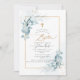 PixDezines Baptism, featuring watercolor dusty blue gum Eucalyptus; a faux gold cross, gold dust and frame accented with luxury calligraphy script. All elements editable and removable.