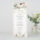 PixDezines First Holy Communion menu, featuring watercolor blush pink roses and greenery, gum Eucalyptus; a faux gold cross, gold dust and frame accented with luxury calligraphy script. All elements editable and removable.