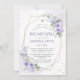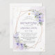 PixDezines watercolor greenery Bat Mitzvah, featuring dusty purple roses, hydrangeas and gum Eucalyptus with faux gold geometric frame and sprinkles of gold dust. Our dynamic design allows you to edit all elements.