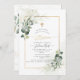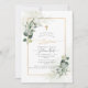 PixDezines Baptism, featuring watercolor lush greenery and gum Eucalyptus; a faux gold cross, gold dust and frame accented with luxury calligraphy script. All elements editable and removable.