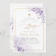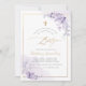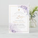 PixDezines spanish Bautizo, featuring watercolor pale violet purple and gum Eucalyptus; a faux gold cross, gold dust and frame accented with luxury calligraphy script. All elements editable and removable.