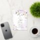PixDezines real foil Baptism - 3 colours foil available, featuring watercolor pale purple hydrangeas, lilac purple roses and alabaster roses with springs of gum eucalyptus; a faux gold cross, gold dust and frame accented with luxury calligraphy script. All elements editable and removable.