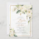 PixDezines Baptism, featuring watercolor cream hydrangeas and alabaster roses with springs of gum eucalyptus; a faux gold cross, gold dust and frame accented with luxury calligraphy script. All elements editable and removable.