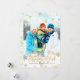 Pixdezines holiday cards, ice blue marble background, snowflakes in faux gold and silver and "Happy Holidays" in fun modern script font. DIY background colour, trim, fonts, and fonts' colours.