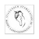 PixDezines brush drawn of a horse bust, a round return address, self-inking stamp.