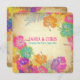 PixDezines beach wedding, passion tango tangerine and pink hibiscus with a dash of monstera, tropical foliage, in bright colours.. with removable vintage faux parchment.