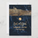 ✡ PixDezines Jerusalem wall and tower of David on midnight blue marble background Bar Mitzvah invitations, modern script in faux gold. All elements are editable and removable, choose from 300+ fonts and fonts' colours.