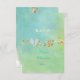 PixDezines RSVPs, original love birds on a branch of colourful blossoms with watercolor background in seafoam, green, yellow and a hint of chartreuse.