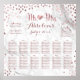 PixDezines faux rose gold specks / confettis with removable white marble background, accented with Mr. and Mrs. script font and a heart. This wedding seating chart utilising poster stock and/or canvas.