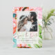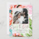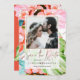 PixDezines original orchid isle, save the date card, featuring coral orange orchids, blue and pink palms. Tropical island style wedding suite.