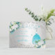 PixDezines elegant Quinceanera Aqua Blue Dress Save the Date card, watercolor flowers in dusty blue rose, hydrangea and lush green foliage,