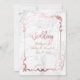 PixDezines wedding invitations, featuring Rose Gold Chandelier on white marble slab accented with baroque frame and a heart. Our dynamic design allows you to edit all elements.