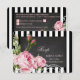 PixDezines rsvp chalkboard and vintage roses illustration by Pierre Redoute in two shades of pink entitled Rosa Centifolia, which can only means hundred petals rose. We layered the background with white stripes pattern and DIY pink.