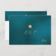 PixDezines minimalist monogram RSVP. Glamoured up with an iridescent teal green and faux gold accent, an RSVP for Bar Mitzvah, dazzled with faux gold Star of David. DIY, see filter tool to change image tone and other elements.