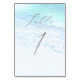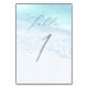 PixDezines table numbers card, crystal clear blue shoreline, with luxury calligraphy script and custom numeric from the same font family 1+... simply enable eye icon to utilise unseen layers.