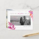 PixDezines pink, orange, summer foliage and elegant calligraphy script font in faux rose gold foil with DIY engagement photos for save our date postcards, accented with ink splatters in faux gold.