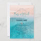 PixDezines surfs up, beach Bar Mitzvah. Aqua blue ocean water on pink sand shoreline. Our dynamic design allows you to edit all elements. Click "customise further" button to edit further or add more text / monogram.