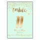 PixDezines gold brush strokes table number 11, with faux gold sprinkles and a DIY mint green background.