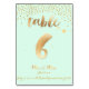PixDezines gold brush strokes table number 6, with faux gold sprinkles and a DIY mint green background.