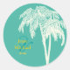 PixDezines twin palms with DIY background colour and fonts. Glossy sticker is perfect for any occasion as party favour seal or envelope sealers and return address all in one.