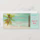 PixDezines vintage boarding pass for a destination wedding. Boarding pass to paradise with a hanging palm tree. Simply click "customise it" button to edit.