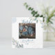 PixDezines thank you and Birth Announcement for a baby boy with watercolor foliage in dusty blue Eucalyptus, and champagne bubbles.