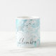 PixDezines white marble and iridescent blue turquoise veins mugs. DIY font+font's colour. See filter to change image tone. This design is transferable to other products.