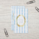 PixDezines white stripes pattern with placid blue digital watercolor, accented with faux gold laurel wreath. Customise it with monogram or delete it entirely. You can change different background and accent colours.