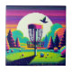 Colourful purple, orange, green and teal pixel art disc golf pin ai art.