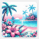 Pixel Art Ocean Pink and Blue Tropical Art Square Sticker