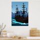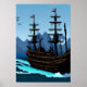 A ship sailing on the open ocean with mountain in the background, pixel art. This is a AI generated art.