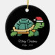 Slow and steady wins the race to holiday cheer with this charming Pixel Art Turtle/Tortoise Santa Hat Ceramic Ornament! Featuring a cute green reptile with a large shell, designed in a fun retro 8-bit style, this charming creature is topped with a festive Santa cap and is set against a sleek black background for a modern, bold look. It's the perfect Christmas gift for turtle owners, reptile lovers, fans of ocean or garden animals, and anyone who appreciates unique, stylish pixel art. This high-quality ceramic circle ornament is fully customizable—easily add a name and year (like 'Merry Christmas Emily - 2025') to create a treasured, one-of-a-kind personalized keepsake for your tree.