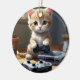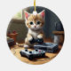 "Pixel Paws: The Gamer Kitten in Action" Ceramic Ornament