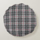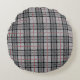 Pixel Plaid in Grey with Red Stripe Round Cushion