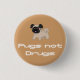 A cute pixelated pug to add to your button collection. Show your pug love with the common and loveable, "Pugs not Drugs" printed next to a tiny pug.
