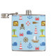 The flask itself is fine. It’s a cheap flask, obviously bought in bulk, however am prepared to overlook that. Given that it is a personalized item, I would have liked to have seen gift boxing instead of the generic packaging. Terrible printing, and/or quality. It’s a cheap, tacky vinyl. It is not cut straight and is also applied in a way that it is overhanging the bottom, causing the glue to catch on items and it will eventually roll and tear, damaging the wrap.