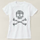 Pixel skull and crossbones in retro grid art, dark teal and cyan highlights. Distinctive digital motif perfect for gamer and streetwear fans, stands out on black tees.