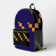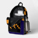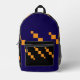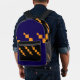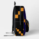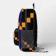 A trendy backpack featuring a striking pixelated geometric pattern in orange, black, and deep blue, blending style with practicality. Ideal for school, travel, or everyday use.