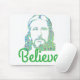 An image of Jesus in pixelated art on a computer mouse pad.