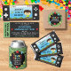 A video game theme for a kid's birthday party is a great way to bring their favourite hobby to life. This unique and fun kids birthday design has pixelated graphics and bright, bold colours reminiscent of classic arcade games along with cute pixellated game assets such as heart, coin, diamond, key and bomb to add a realistic gaming feel to it. A video game birthday is sure to provide hours of entertainment and create lasting memories for any young gamer.