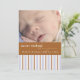 Introduce your new little one with this photo card of blue and brown stripes. On the front it's easily customised with your baby photo and birth info, and on the back update with your family names.