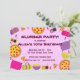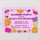 This slumber party invitation features sleeping bags, pillows, pizza and popcorn and customisable text.