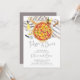 Fun casual pizza & brews engagement party invitation featuring a pizza on a pizza peel with bottles of beer and wine set on a neutral taupe & white stripe tablecloth. Available in our shop for a bridal shower and rehearsal dinner.