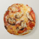 Fun and colourful Pizza theme throw pillows with image of a cheese pizza with mushrooms and tomato on both sides of the pillow. Designed for adults or kids in a design that has character and style.
