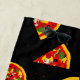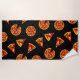 Pizza Lover Fun Food Pattern Beach Towel. Black beach towel patterned with fully loaded tasty pizzas.